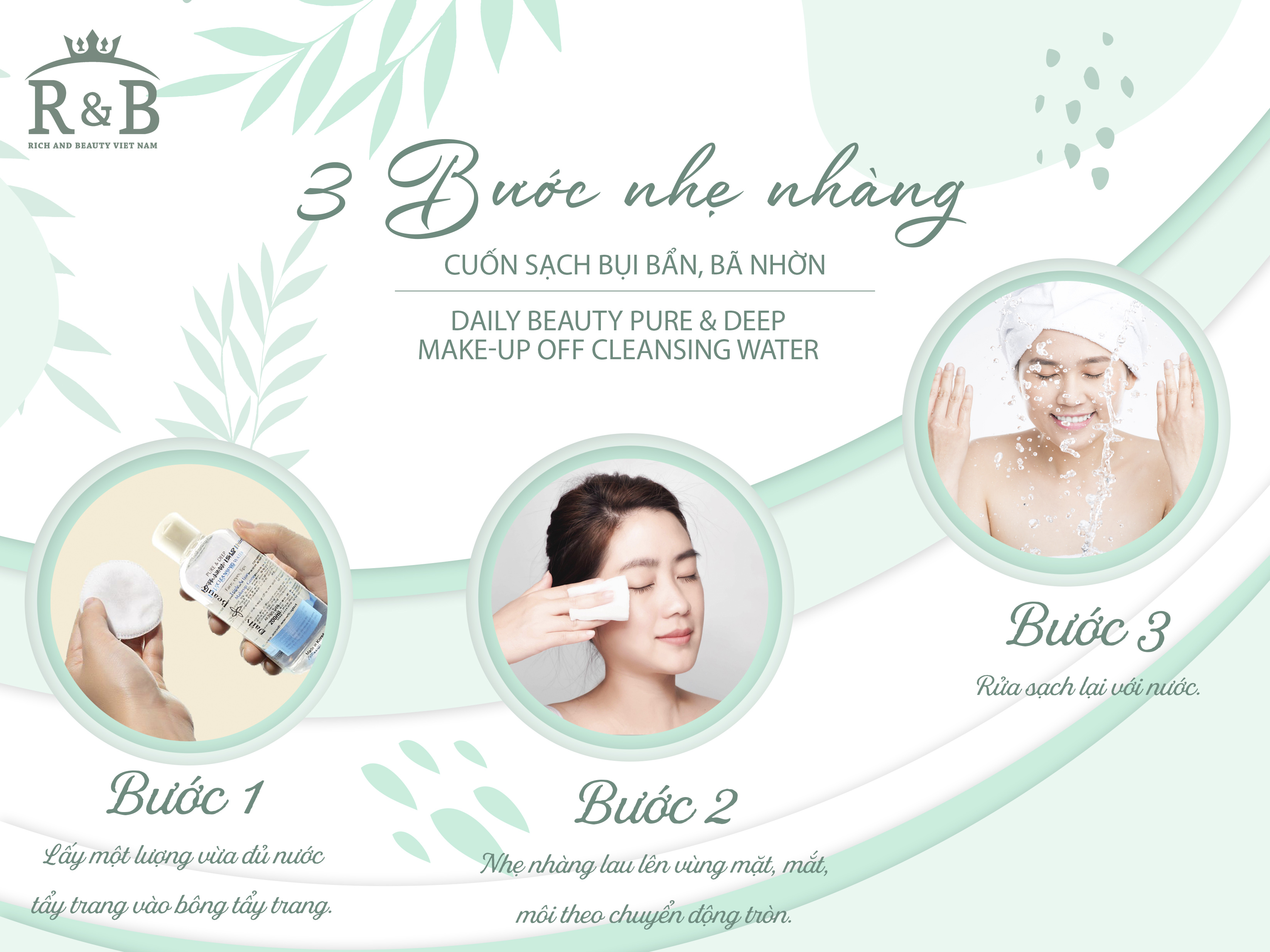 Nước tẩy trang Daily Beauty Pure & Deep Make-up Off Cleansing Water được chiết xuất từ các thành phần chính sau: