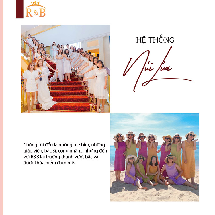 Bên cạnh đó, tôi cũng tham gia thi tuyển khoá Giảng viên R&B và là một trong những người xuất sắc được lựa chọn. Cho đến hiện tại, tôi đã là giảng viên cao cấp của R&B Việt Nam, tự tin thuyết giảng trước hàng nghìn chị em để truyền đi những bài học, kinh nghiệm đắt giá mà bản thân đã học và tích lũy được trong thời gian qua.