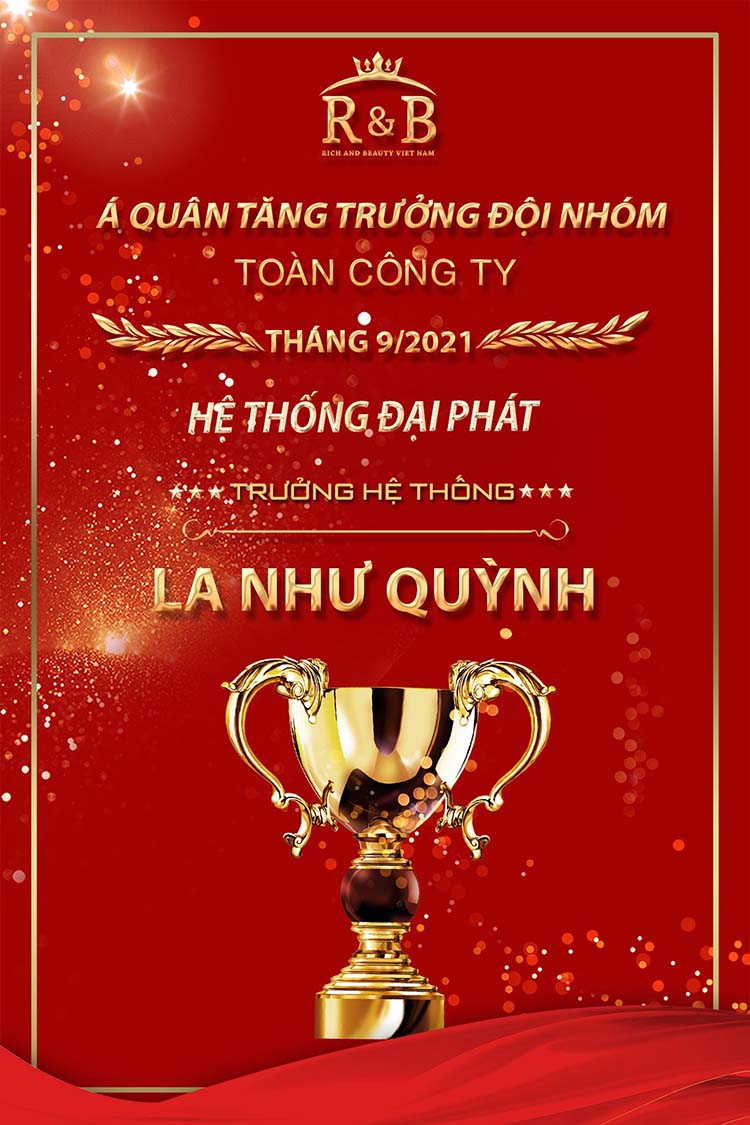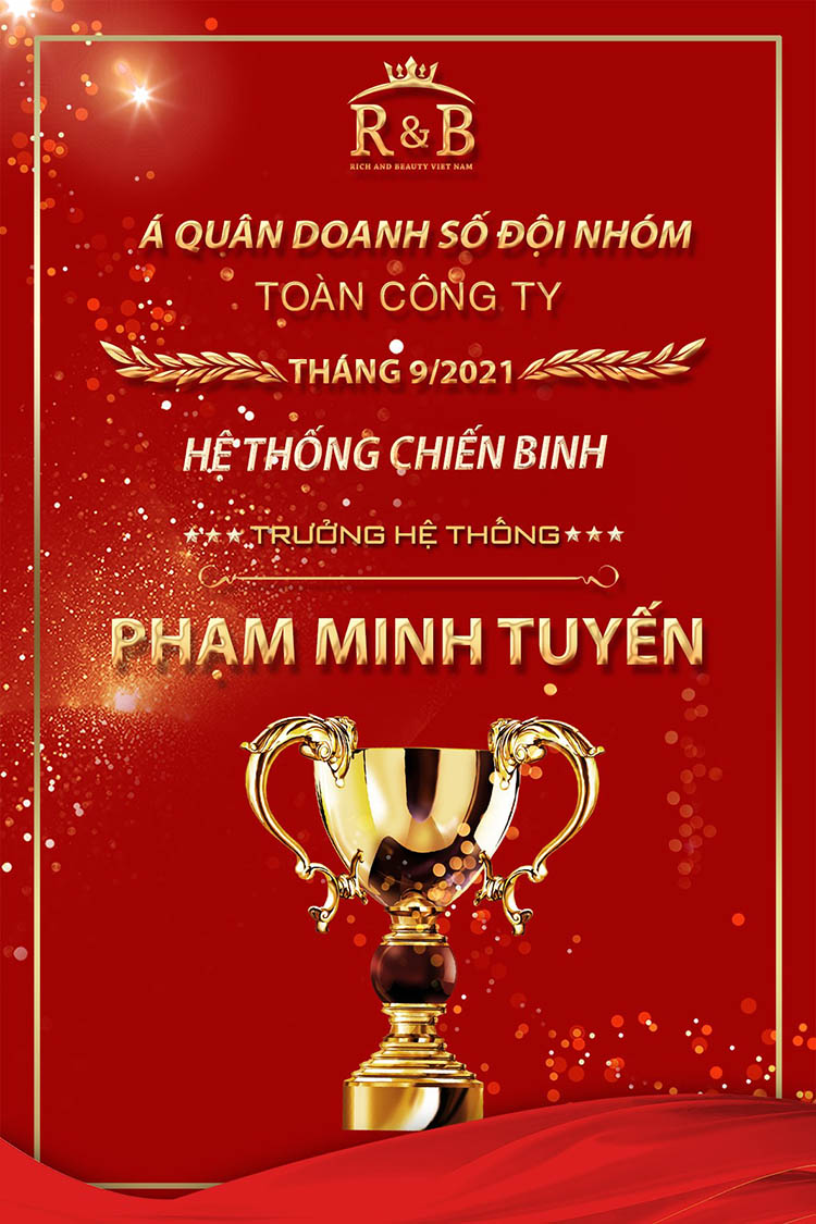 Theo sát vị trí Quán quân, HT Chiến Binh đã cán đích đường đua tháng 9/2021 với vị trí thứ 2 ở hạng mục Doanh số Đội nhóm toàn công ty. R&B xin được chúc mừng các anh chị em của Chiến Binh nhé!