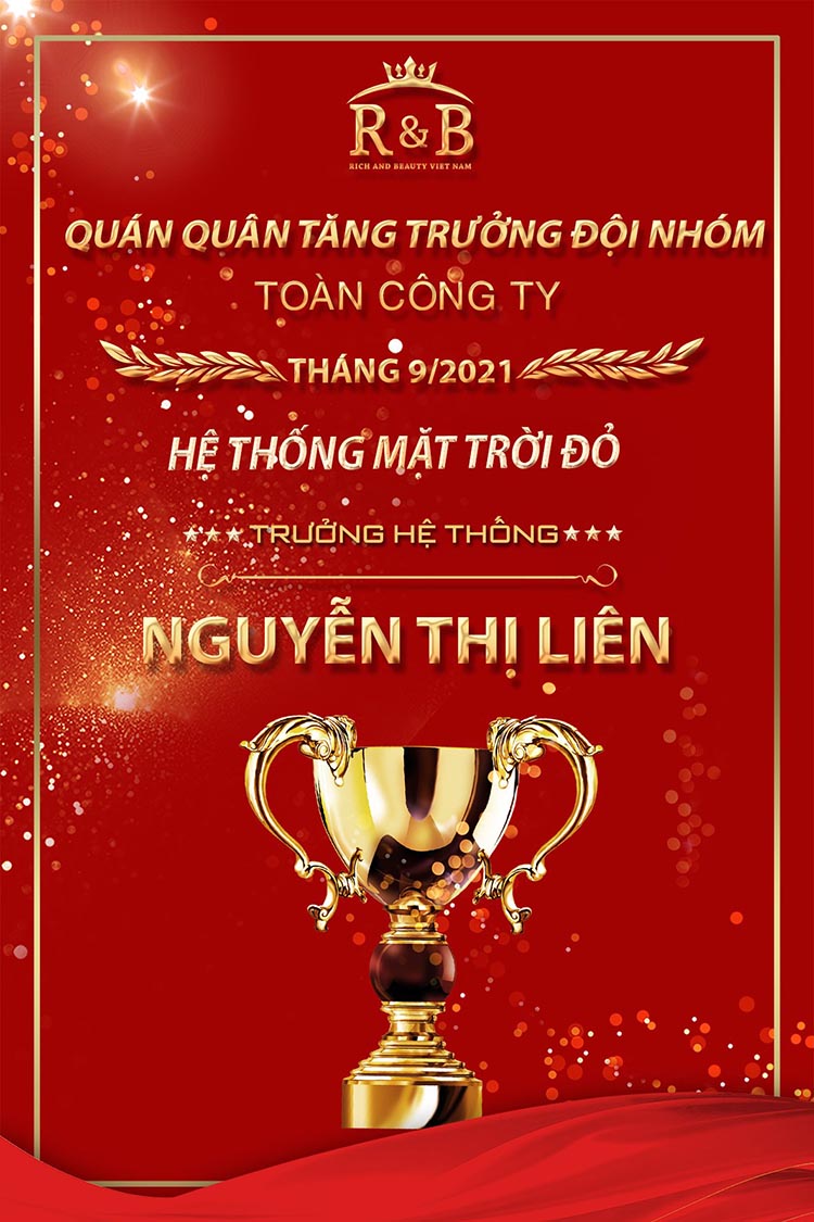 Chúc mừng HT Mặt Trời Đỏ – THT Nguyễn Thị Liên giành giải Quán quân Doanh số Đội nhóm và Quán quân Đội nhóm Tăng trưởng toàn công ty
