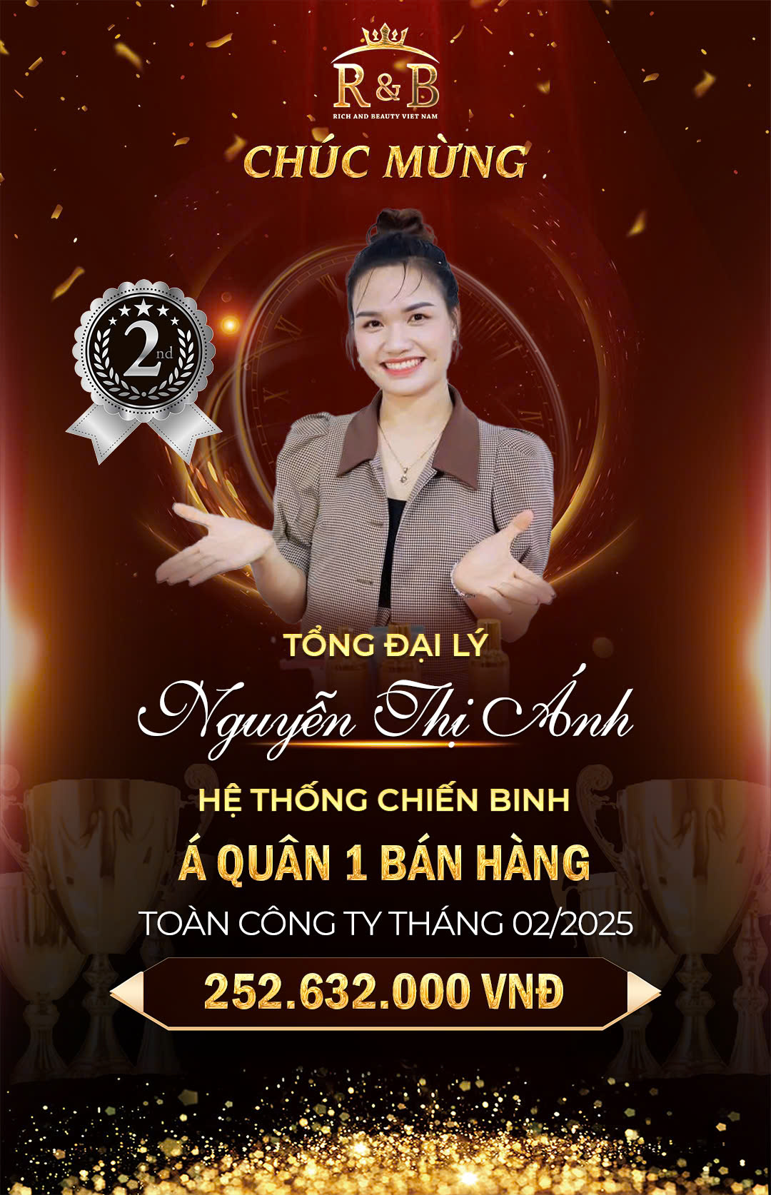 Chúc mừng TĐL Nguyễn Thị Ánh – HT Chiến Binh đạt Á quân 1 bán hàng toàn công ty tháng 2/2025