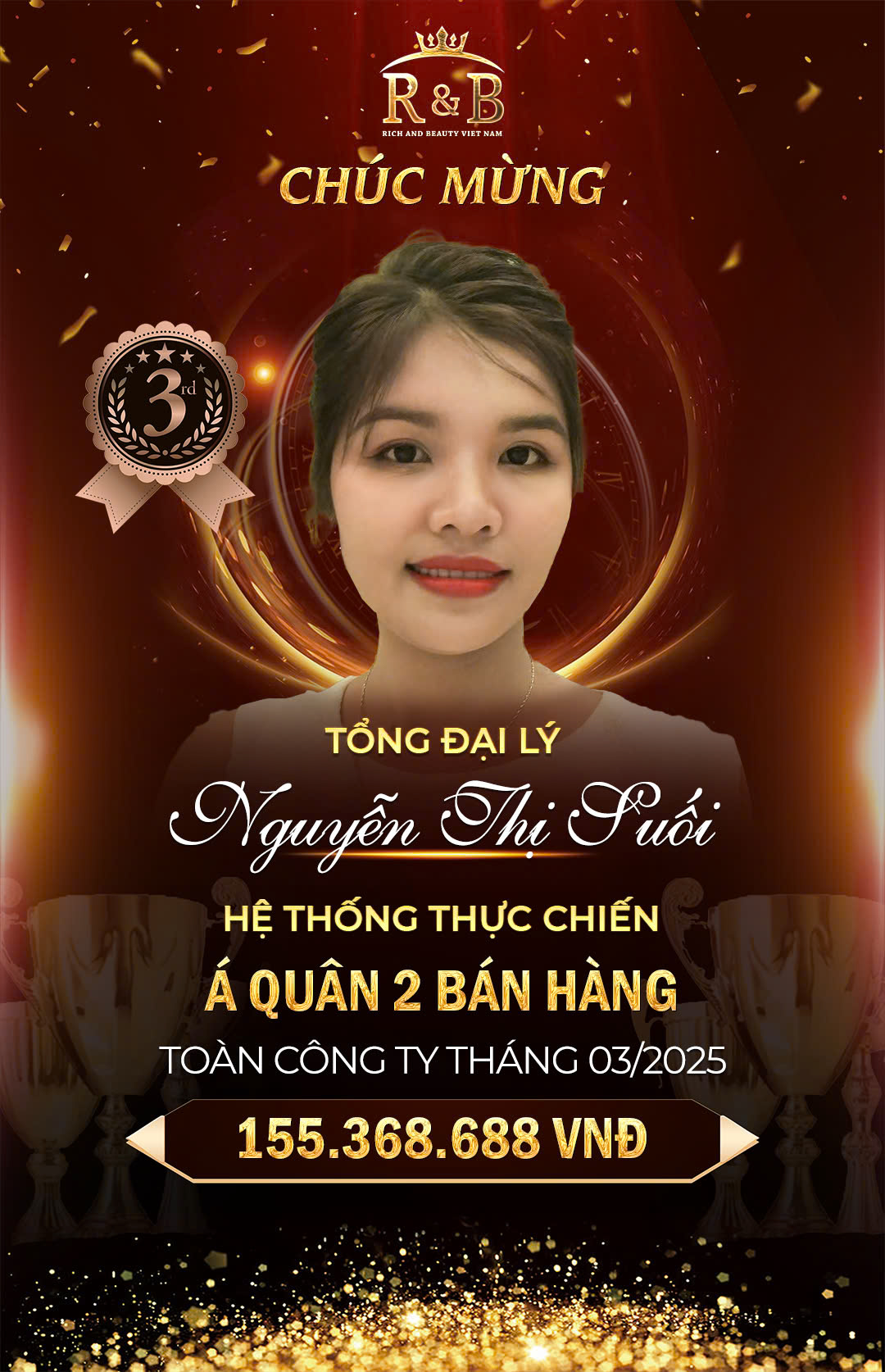 Chúc mừng TĐL Nguyễn Thị Suối – HT Thực Chiến đạt Á quân 2 bán hàng toàn công ty tháng 3/2025